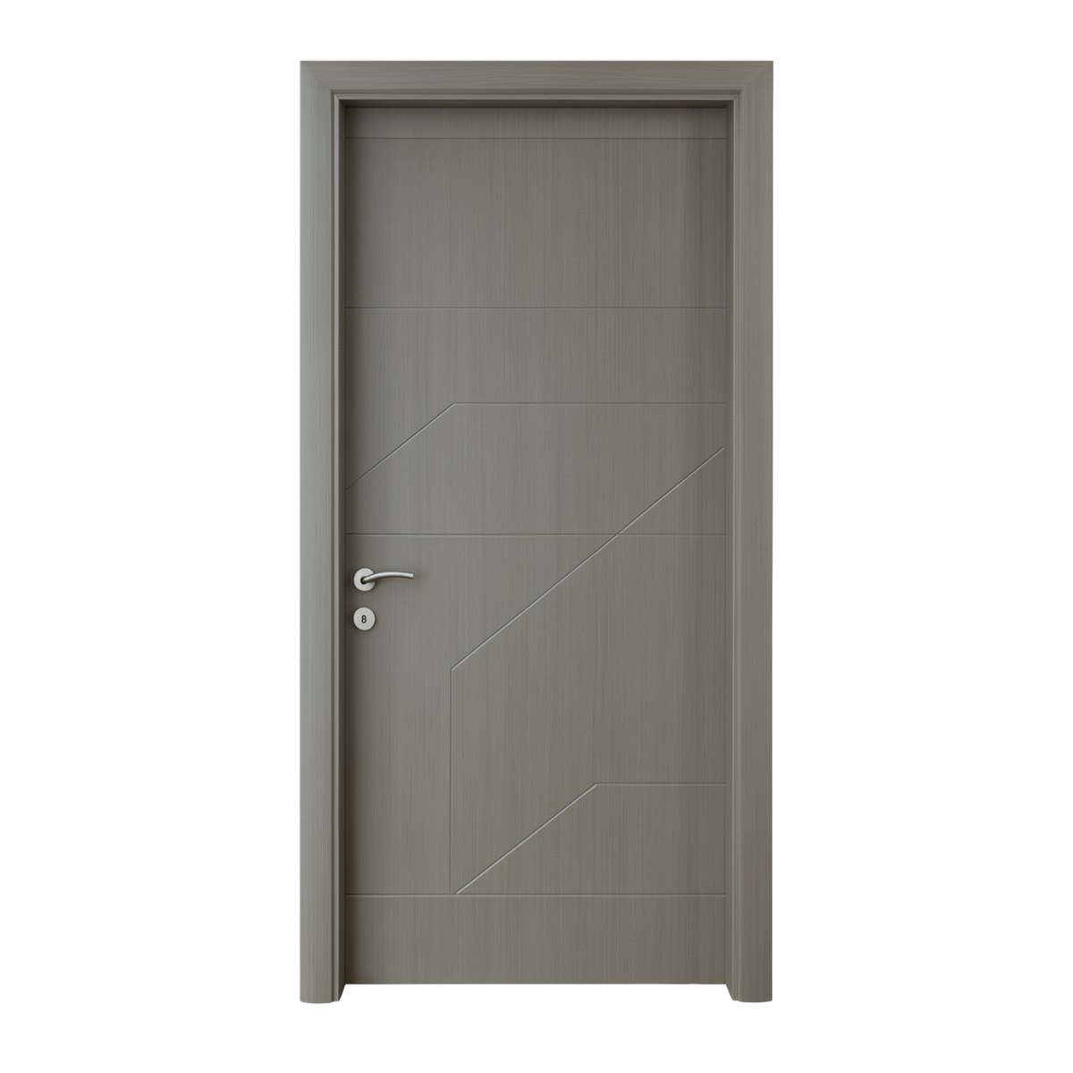 Model M126 presents a refined contemporary design defined by its geometric groove pattern, combining clean horizontal lines with sharp angular cuts for a striking yet balanced aesthetic. The subtle detailing creates visual interest without overwhelming, making it an excellent choice for modern homes and professional spaces alike.